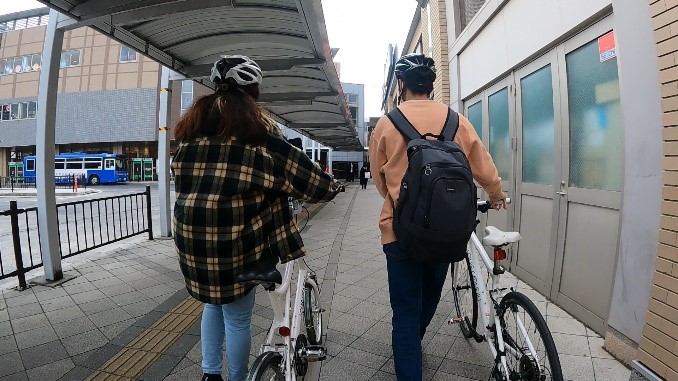 這一天,我們在下關車站北自行車停車場租了自行車,騎了大約4.4公里。 同行的外國人是Jessica。她是來自夏威夷的山口大學的留學生,2021年秋天來到山口縣,是第二次來下關。