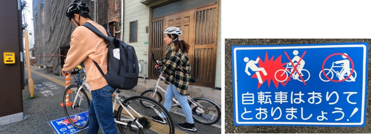 No.1 人行道上有行人時,下自行車並推動自行車行走