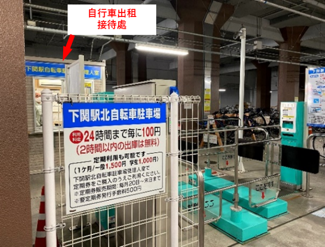 可以租借自行車的下關車站北自行車停車場位於下關車站內。 它看起來像普通的自行車停車場,所以你可能會對於是否能夠租借感到不安,但沒問題的。 請不要猶豫的進去 在這裡申請表只能用日語填寫, 因此需要具備日常會話程度的日語能力。