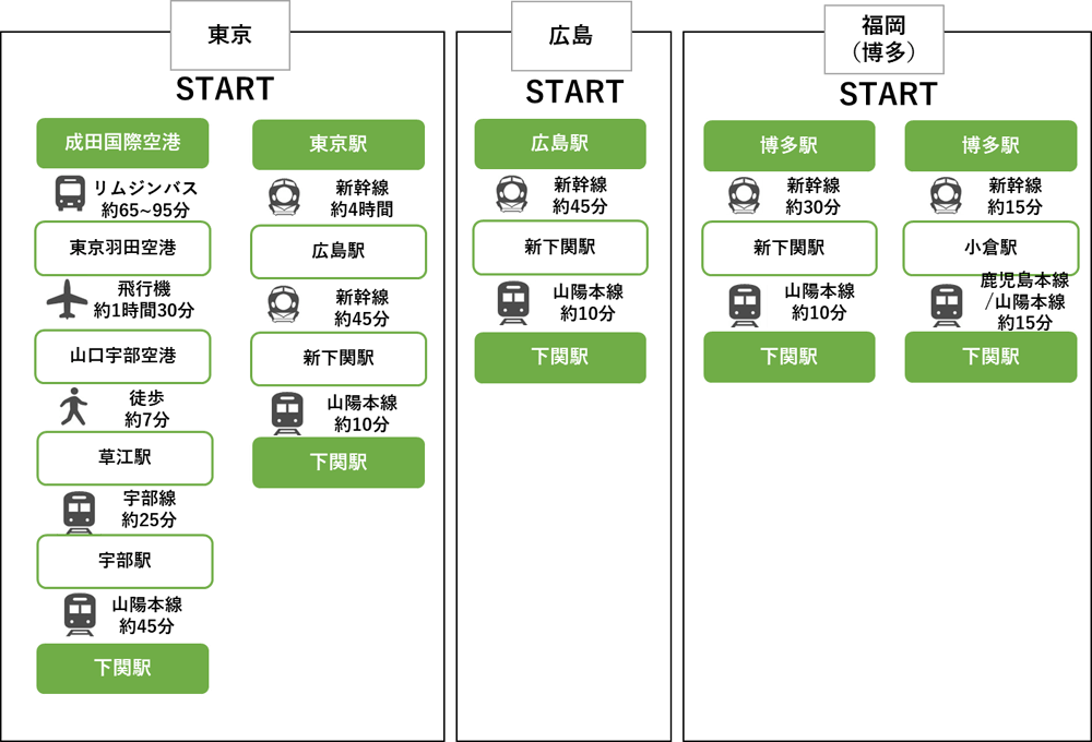 下関駅までのアクセス方法はこちら ↓