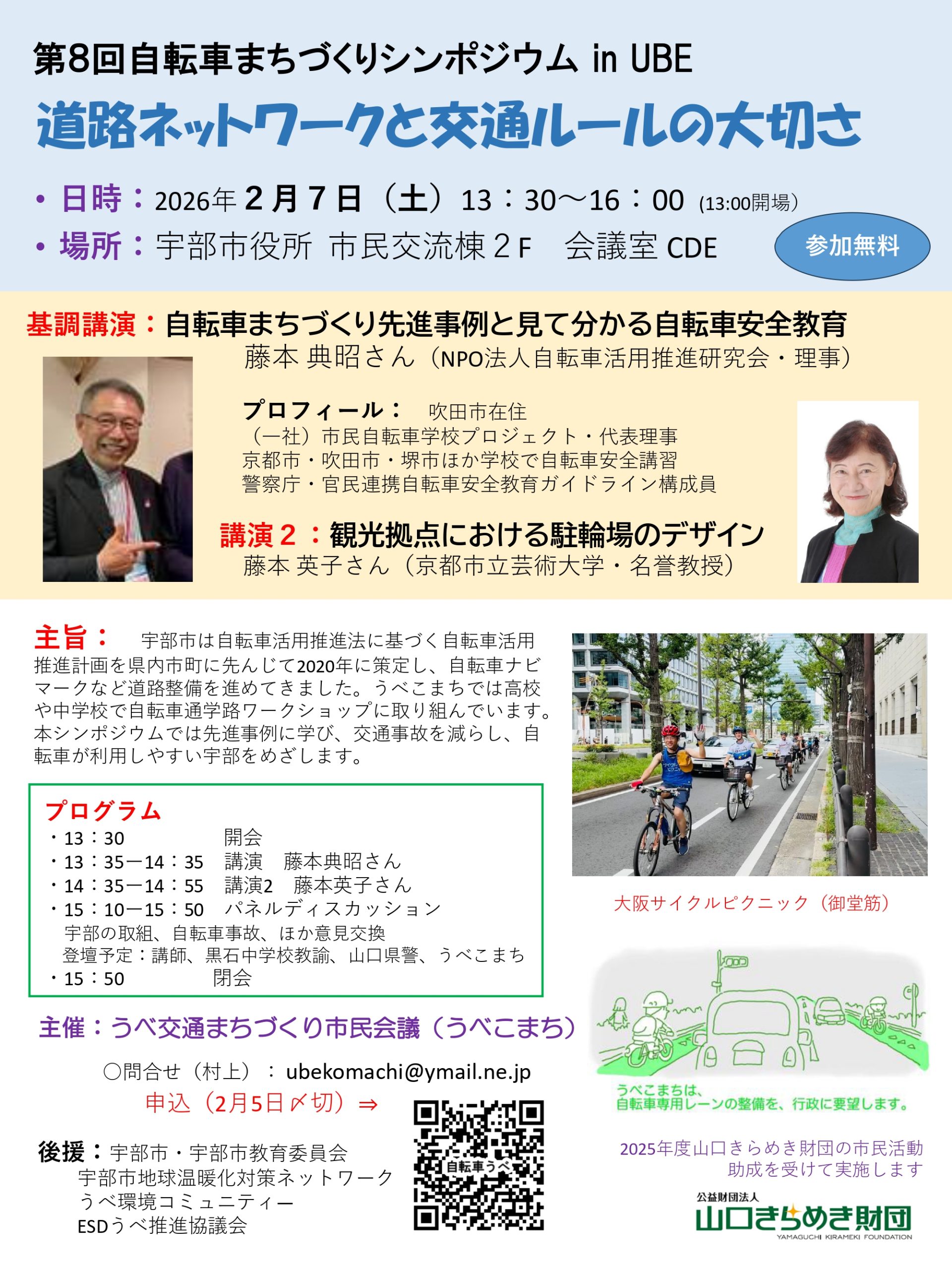 2/7 自転車まちづくりシンポジウム(宇部市) 2026/01/20 令和8年2月7日(土)に、宇部市役所(市民交流棟2F 会議室CDE)で、自転車まちづくりシンポジウムが開催されます。 参加費は無料となっておりますので、興味のある方はご参加ください! もっと見る