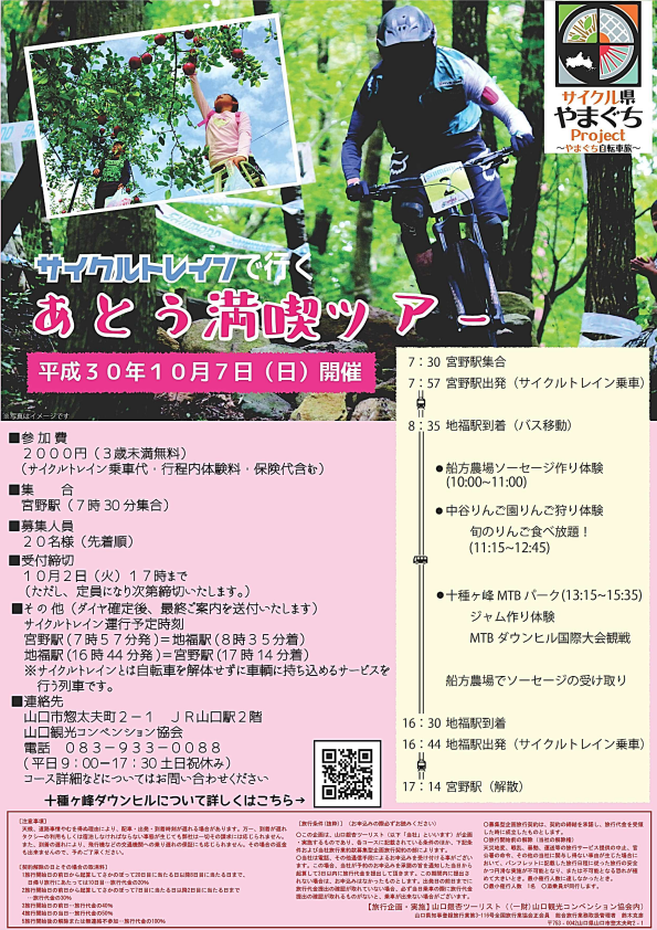 10月6日(土)〜7日(日)「やまぐち十種ヶ峰国際ダウンヒル」の併催イベント「サイクルトレインツアー」の募集が開始されました。
