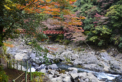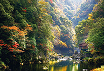 山口市内屈指の紅葉の名所として知られる景勝地。峡谷内には名物の鮎料理を提供するお店があるほか、渓谷の奥には温泉も湧出している。