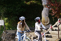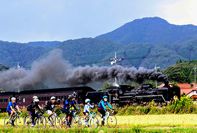 登山やMTB、キャンプなどが楽しめる霊峰十種ヶ峰をはじめ、ネコ寺として有名な雲林寺などがある山口市・萩市の山間部を巡るコース。リンゴ狩りやSLやまぐち号との並走、石州瓦の赤い屋根が続く昔懐かしいのどかな田園風景を楽しめるコースです。