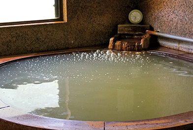 豊富なイオンを含む泉質で、病気治療などの湯治場として人気。なかでも高濃度のリチウムには鎮痛作用があり、二酸化炭素には保湿や血圧を下げる効果がある。