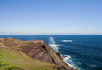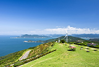 眼下には広大な日本海、見上げればどこまでも続く青空の大パノラマが広がる、標高333mにある大草原。絶景を眺めるキャンプ場としても人気。