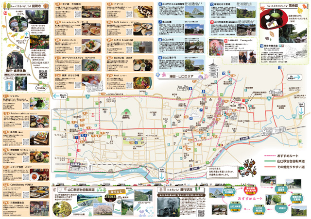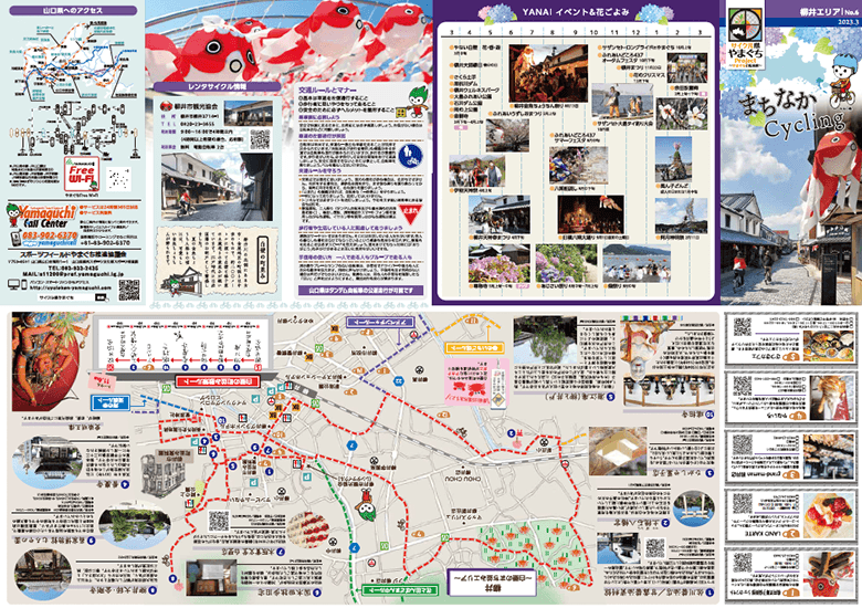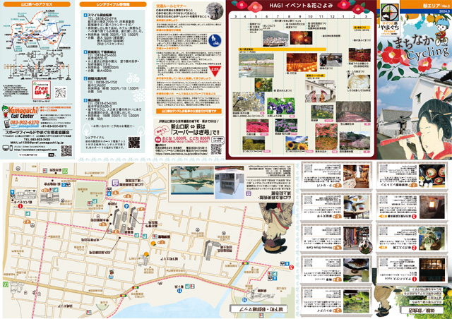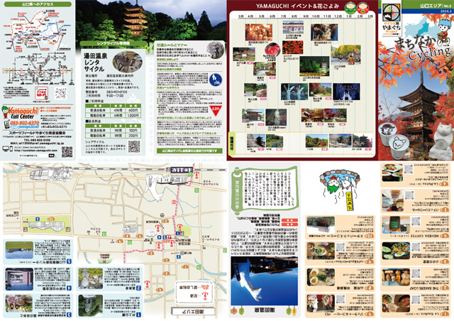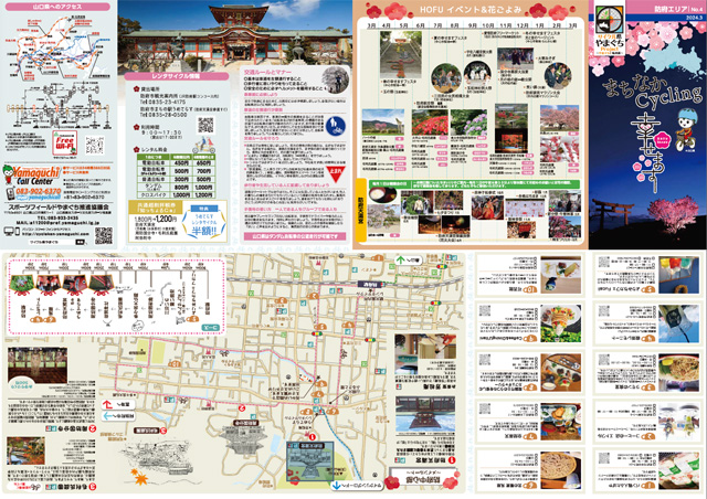 長距離を走るよりも、グルメや文化・歴史・創作体験、工房見学など、まちなかを遊びつくすためのポタリング(自転車での散策)マップを作成しました。 「気軽に、普段着で、走るよりも食べて遊ぼう」をテーマに、まちなかをゆる〜く自転車で散策してみませんか? 下関エリア まちなかCyclingマップ(表面)【PDF:8.9MB】 まちなかCyclingマップ(中面)【PDF:5.6MB】 山口エリア まちなかCyclingマップ(表面)【PDF:3.1MB】 まちなかCyclingマップ(中面)【PDF:4.6MB】 萩エリア まちなかCyclingマップ(表面)【PDF:3.9MB】 まちなかCyclingマップ(中面)【PDF:4.7MB】 防府エリア まちなかCyclingマップ(表面)【PDF:4.5MB】 まちなかCyclingマップ(中面)【PDF: 10MB】 岩国エリア まちなかCyclingマップ(表面)【PDF:4.1MB】 まちなかCyclingマップ(中面)【PDF:4MB】 柳井エリア まちなかCyclingマップ(表面)【PDF:3.0MB】 まちなかCyclingマップ(中面)【PDF:3.4MB】